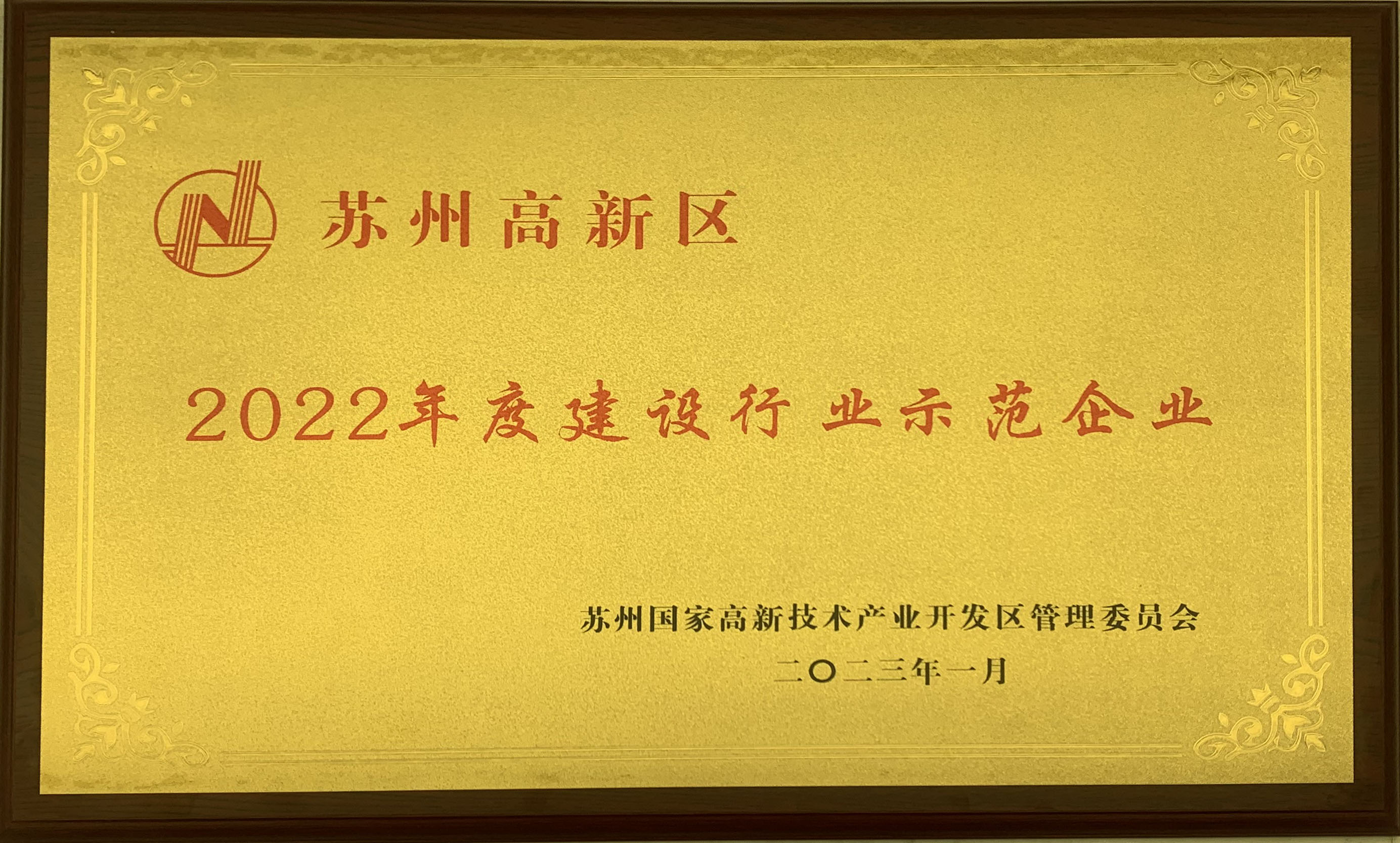 苏州高新区2022年度建设行业示范企业-尊龙凯时官网